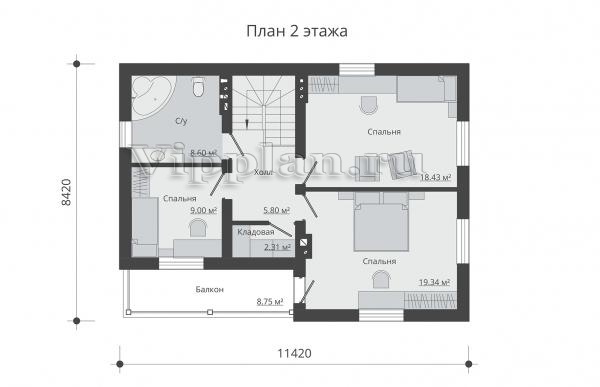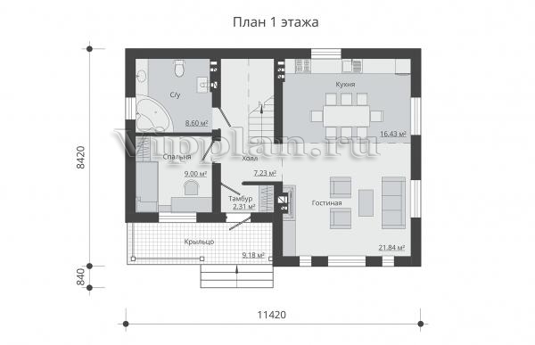 | Размеры дома: | 11.42м×8.42м |