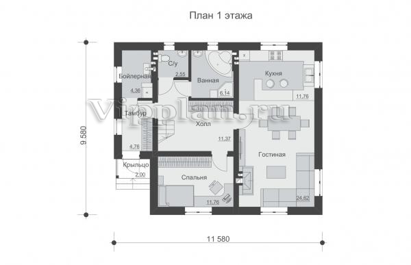 | Размеры дома: | 11.58м×9.58м |