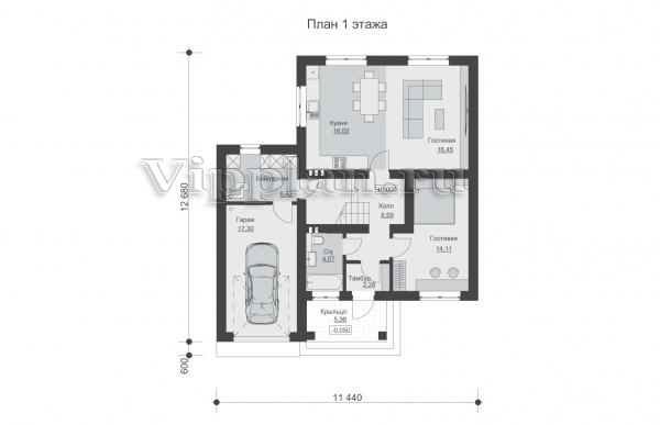 | Размеры дома: | 12.68м×11.44м |